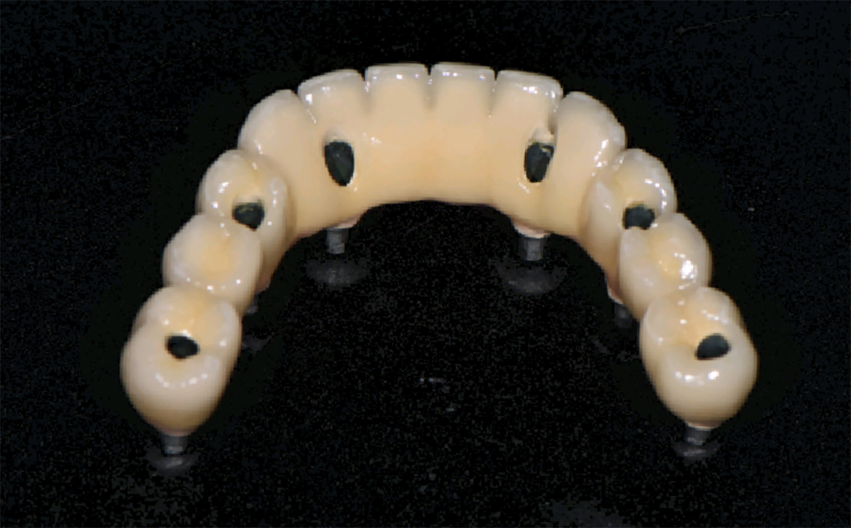 Odată ce implanturile dentare s-au integrat complet în osul maxilarului, medicul stomatolog va înlocui lucrarea protetică temporară cu cea permanentă. Aceasta reprezintă o punte fixă din metalo-ceramică sau zirconiu-ceramică și imită aspectul și funcția dinților naturali pentru ca pacientul să se poată bucura de noul său zâmbet.