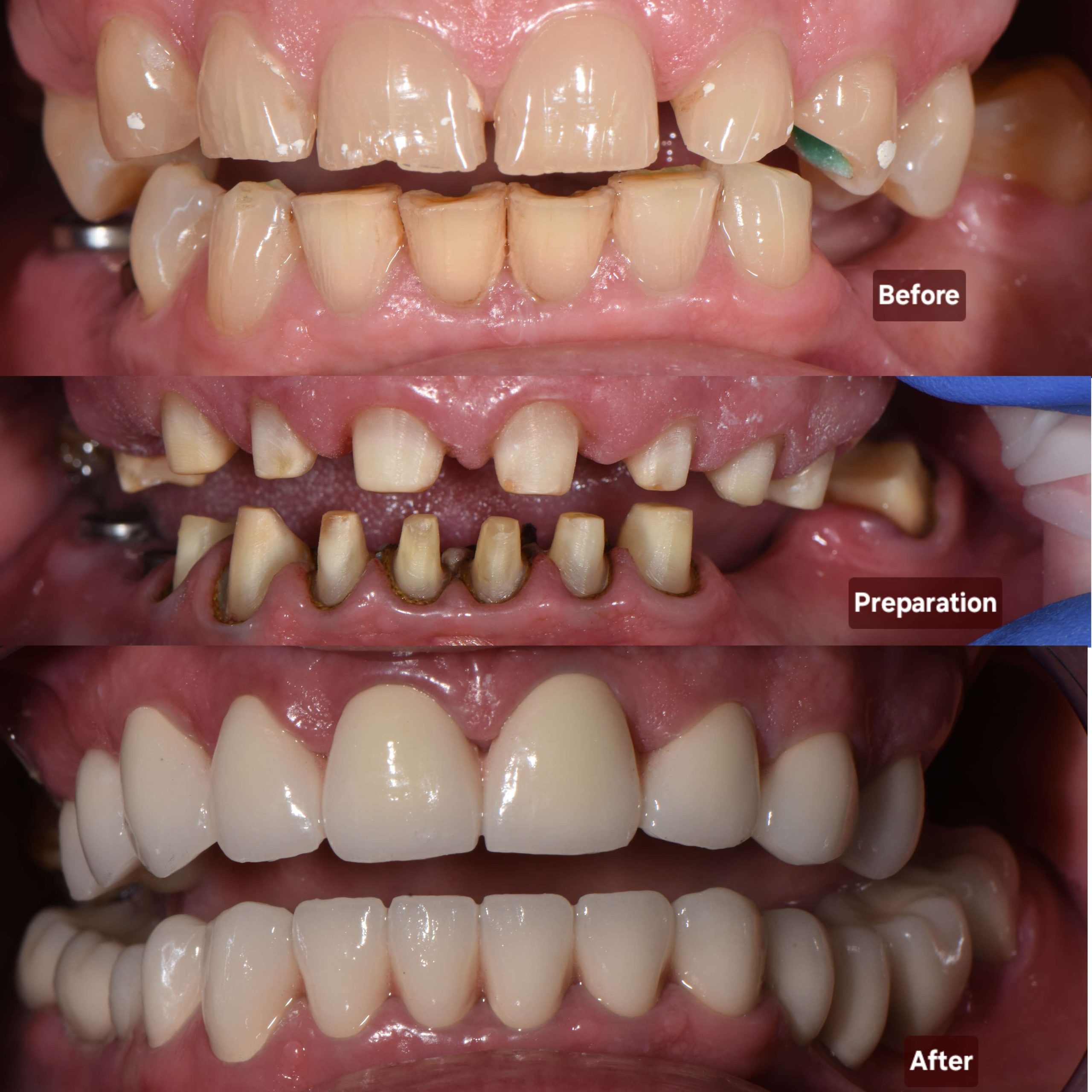 În situațiile în care dintele natural nu poate fi salvat și este necesar de a readuce în primul rând funcția de masticație cât și cea estetică, de a preveni consecințele edentației, se recurge la o procedură de tandem prin reconstruirea dintelui din 3 părți: implantul dentar care ține loc de rădăcina dentară, bontul protetic(ajută la conectarea implantului de coroană) și coroana dentară fixată pe implant (partea superioară a dintelui care este vizibilă în cavitatea bucală).